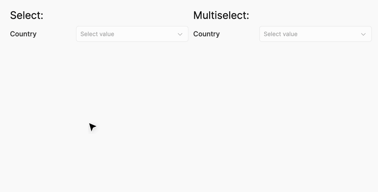 The `Select` and `Multiselect` differ only in one key aspect. The `Select` allows the selection of only a single option at most, while the `Multiselect` allows the selection of as many options as the user likes. Due to this, selected values are visualized differently.