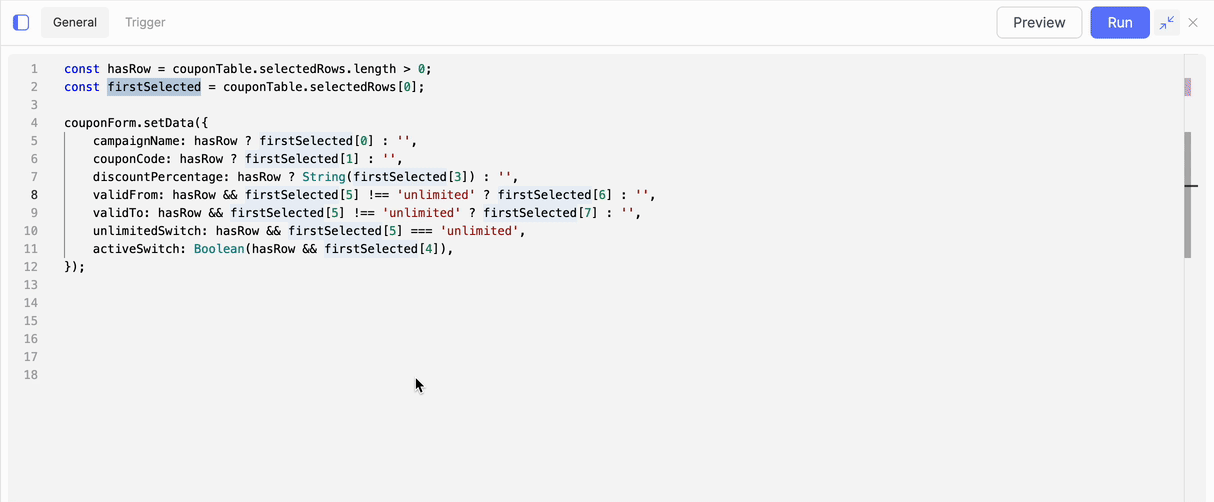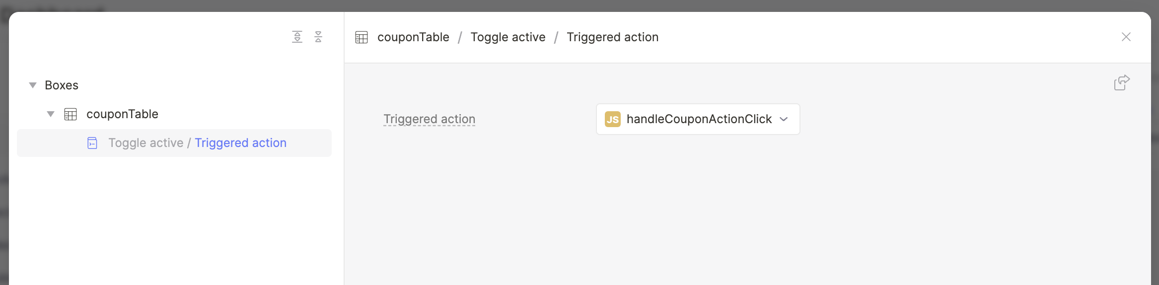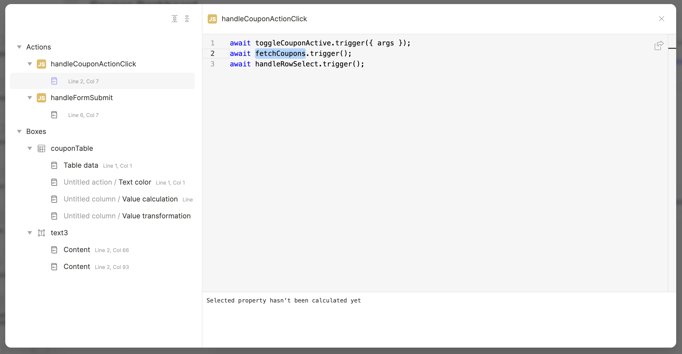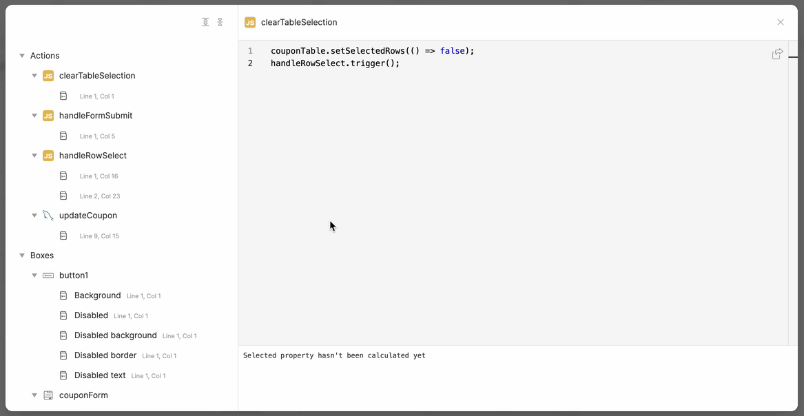 Despite the ability to modify usages immediately, you might want to rather jump to the original place where the usage occurred. This is possible by clicking on the icon in the top-right corner. The popup will close and the app editor will navigate the user to the place of usage, which can have multiple implications: