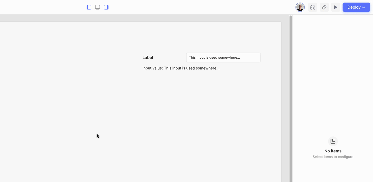 In this example, the `value` of `textInput1` is used on the `value` property of `text3`. In case this input was deleted, we would end up with an erroneous script in this property of `text3`, which could be devastating for the correct functionality or usability of this app.