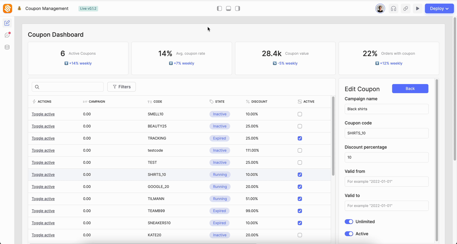 Our app editor constantly keeps track of usages in various places where code can be used. The result is a sophisticated dependency graph, which allows us to make usages transparent and to dispatch warnings for potentially harmful modifications.